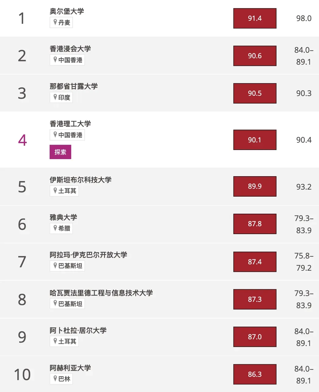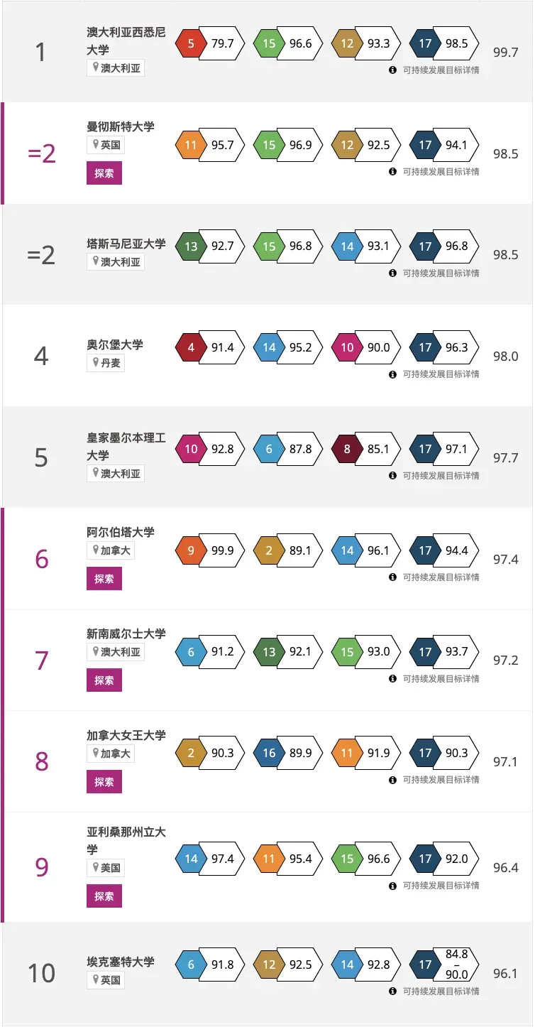 此项排名则是评估大学在提供公平优质教育、促进职业培训和提供终身学习机会方面表现出色。