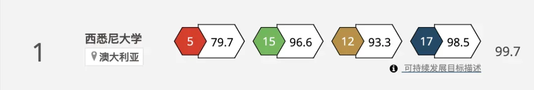 今年依然排在第一的澳大利亚西悉尼大学,在SDG5性别平等、SDG12负责任消费和生产、SDG15陆地生物,和SDG17促进目标实现的伙伴关系方向获得高分,稳居全球第一名。