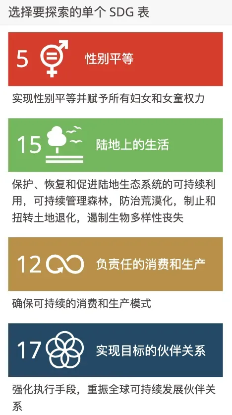 以上指标为联合国官方公布的17个可持续发展目标,是实现所有人更美好和更可持续未来的蓝图,旨在共同面对全球性的挑战。