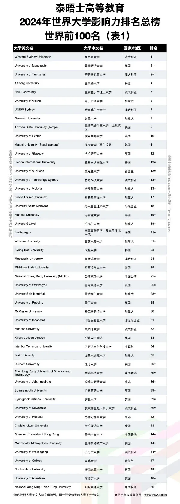 近日,作为四大权威世界大学排名的泰晤士高等教育揭晓了今年最新的2024世界大学影响力排名!