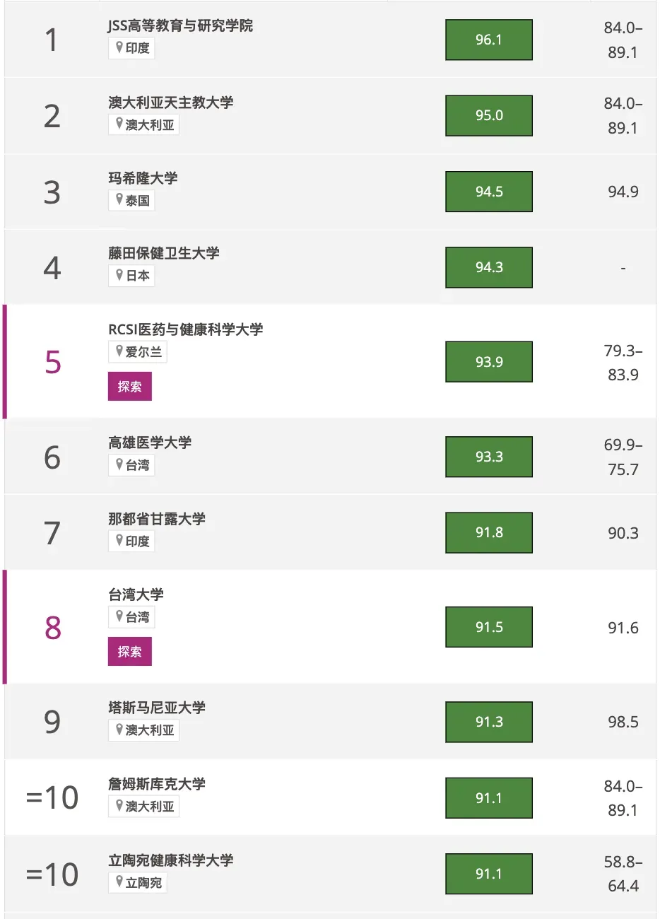 入围前三的院校分别为印度JSS高等教育与研究学院、澳大利亚天主教大学,以及泰国玛希隆大学。