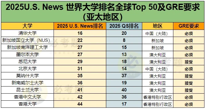 亚太地区顶尖院校对GRE成绩也基本都有要求!