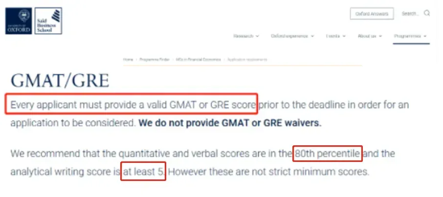 牛津大学商学院要求申请者GRE达到80%+,分析性写作至少5.0分!