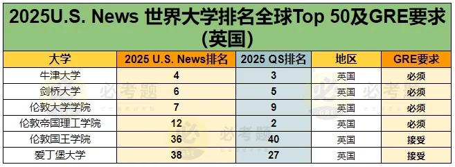 不只是美国高校要求GRE成绩,Top50的英国院校中,超半数要求提交GRE!