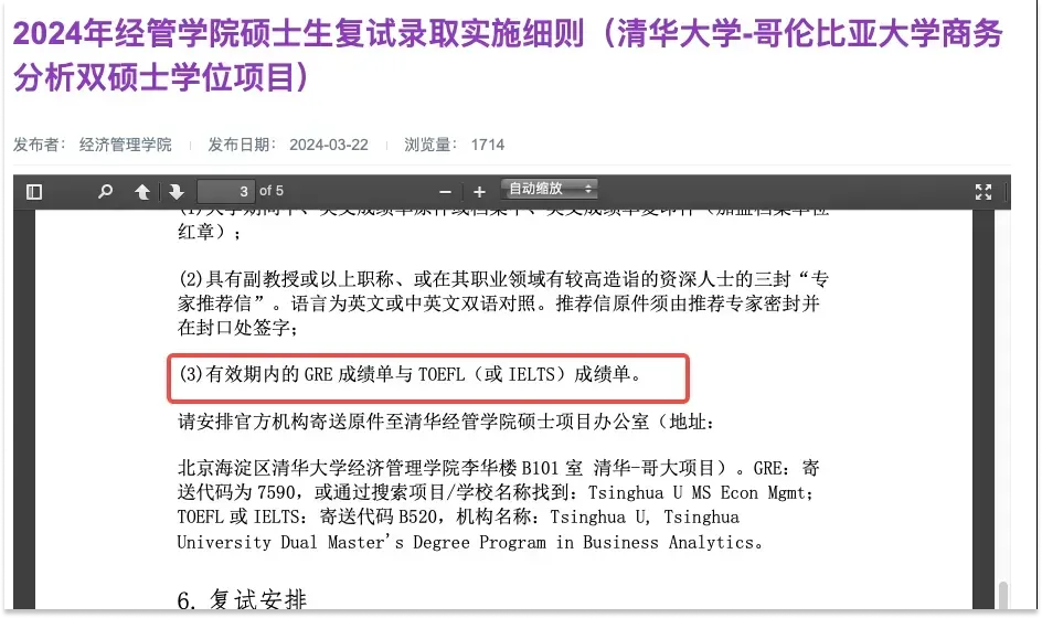清华大学-哥伦比亚大学商务分析双硕士学位项目,在参加复试时需要提供GRE成绩。