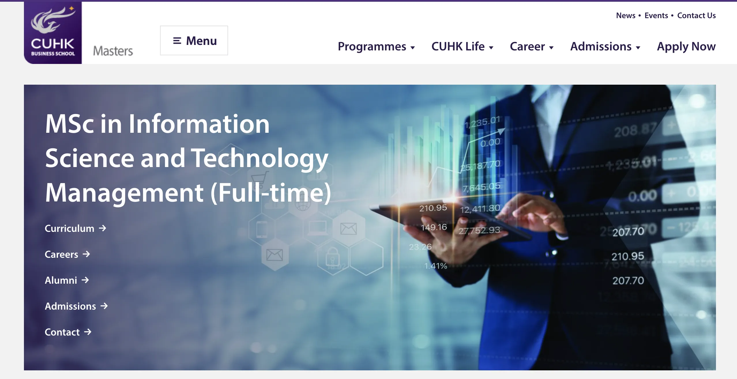 官网链接:https://masters.bschool.cuhk.edu.hk/programmes/mscistm/