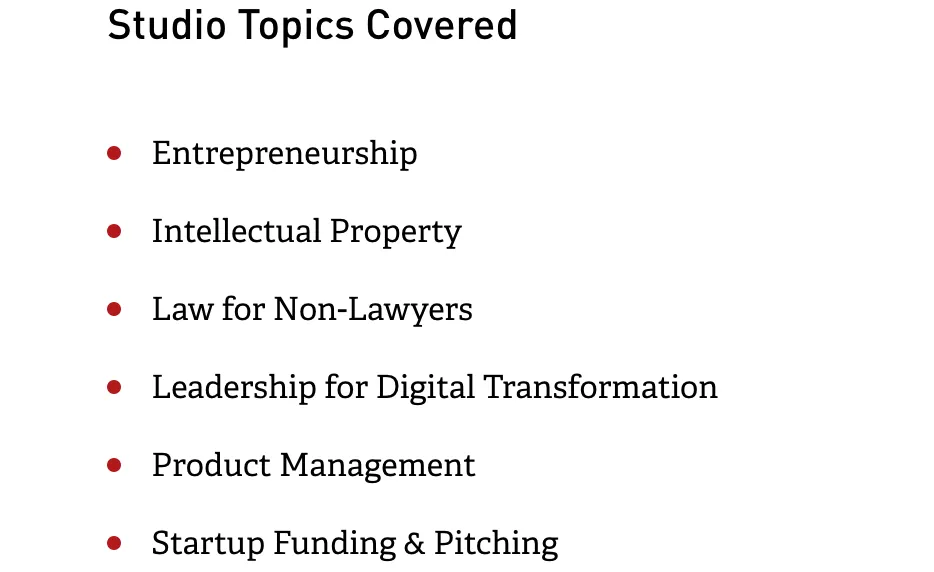 在学习技术课程的同时,学生还将完成Studio课程,解决科技公司面临的实际业务问题,并为创办自己的初创企业做准备。在学习Studio课程期间,DSDA的学生还将与计算机科学、电气工程、商业和法律课程的学生一起组成跨学科团队,研究各个方面的问题。