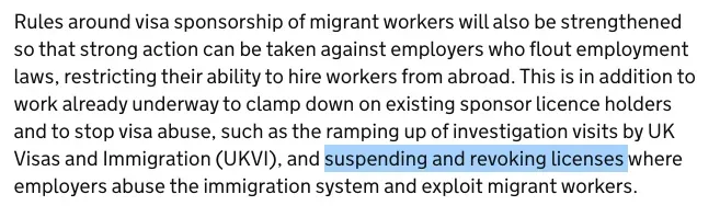 此外,签证赞助规则将得到进一步加强。英国移民局将加大对签证赞助持有者的审查力度,打击滥用签证制度和剥削海外员工的行为。