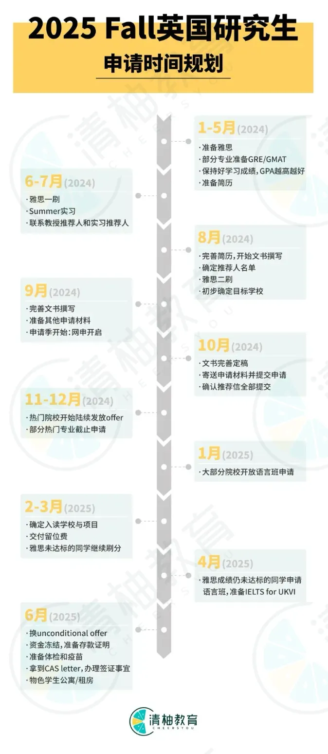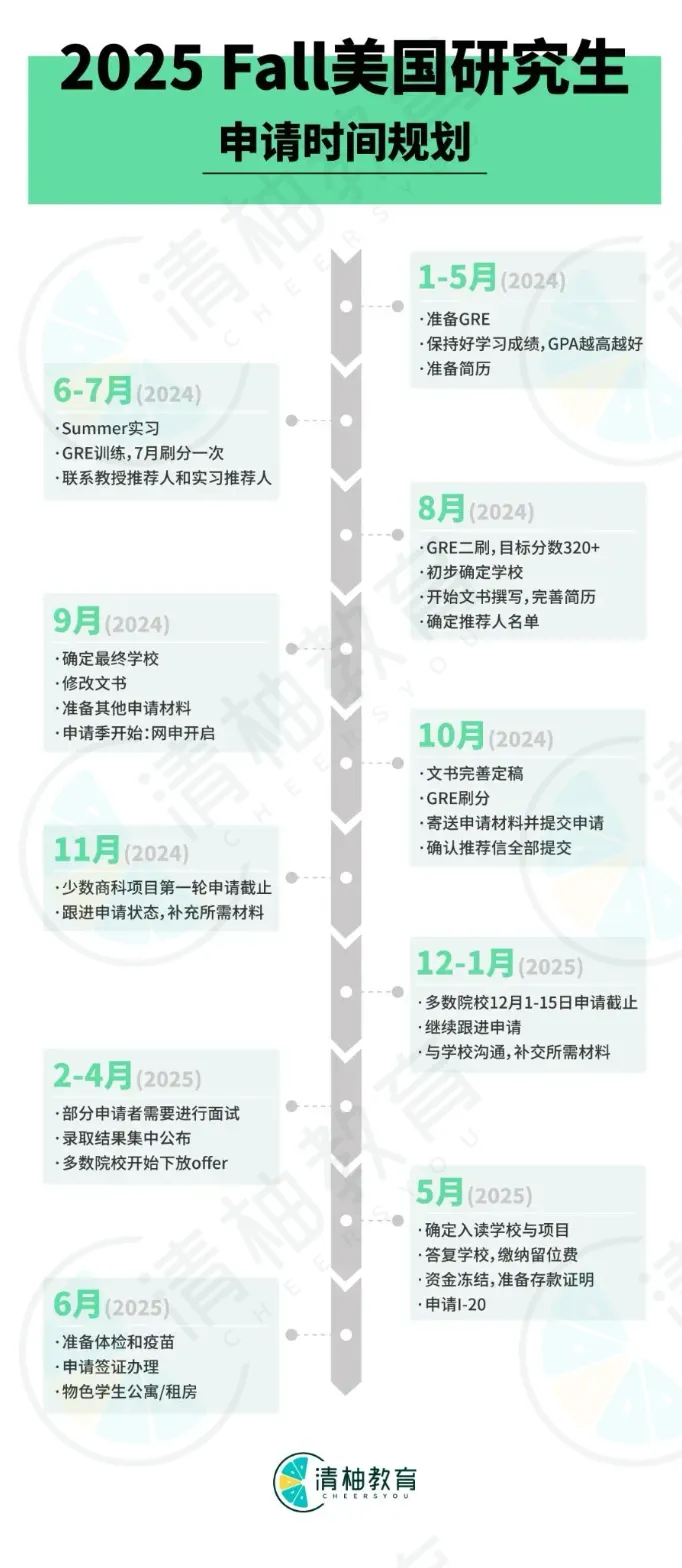 清柚也给大家附上了25Fall申请时间规划的参考,希望能够帮助合理安排各个阶段的准备工作,做到心中有数、从容不迫。