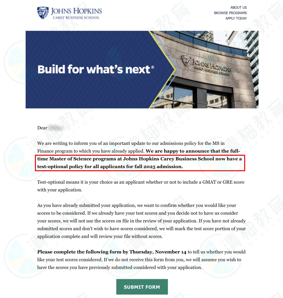 JHU商学院重大改变:25Fall申请不再强制要求GRE/GMAT成绩!