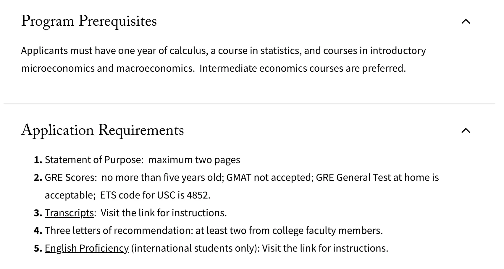 申请南加州大学经济学与数据科学硕士项目的学生需满足以下要求:
