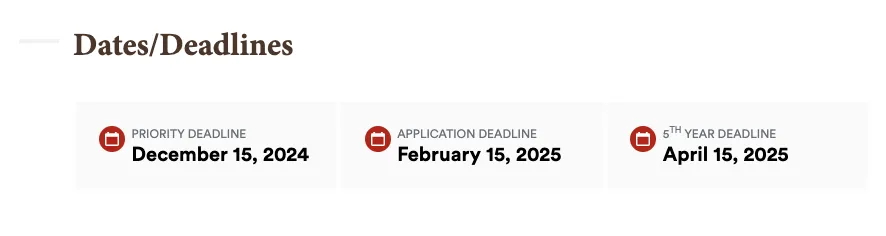 申请的优先截止日期为2024年12月15日,最终截止日期为2025年2月15日。