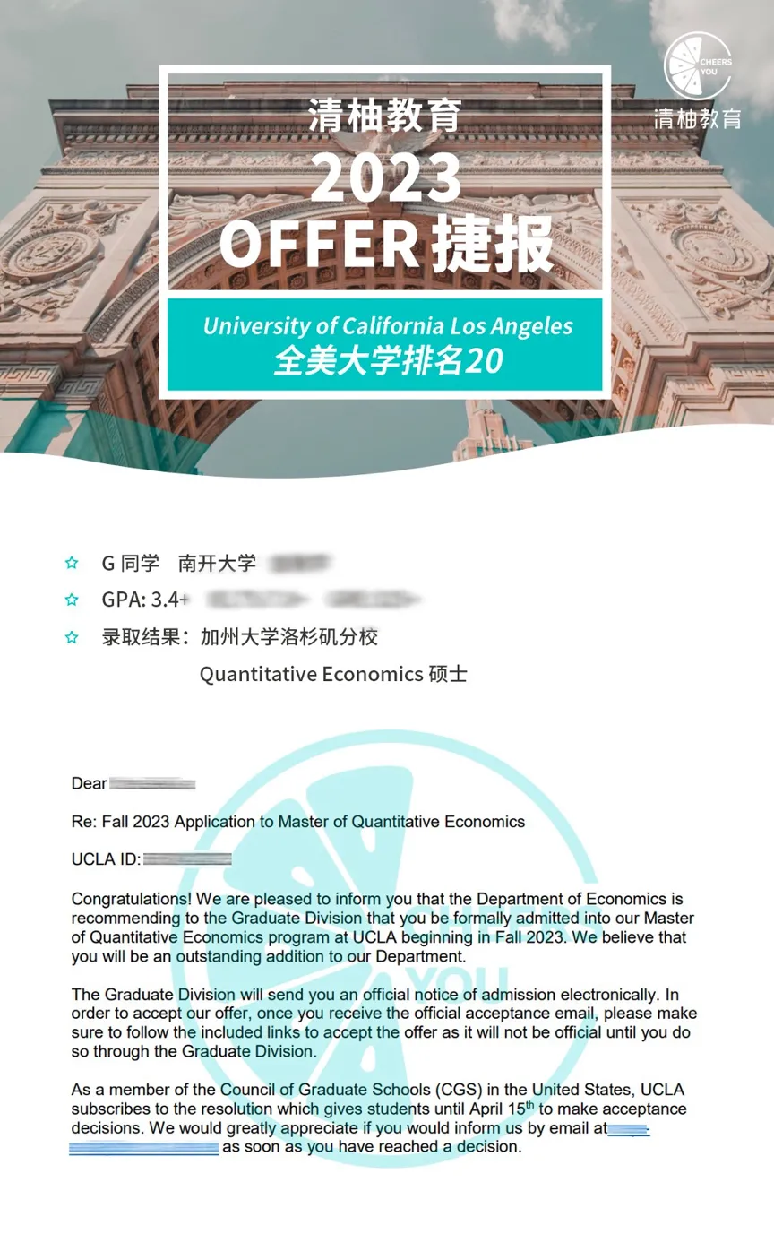 近年来,由于纯经济项目的开设变少,越来越多的同学在申请时选择复合型的经济学项目, 其中,UCLA的MQE就成为了很多同学留学美国的首选。今天我们就来详细解析下UCLA的量化经济学项目,附录取案例和就业情况噢~申研细节可以添加清柚老师:qingyouge23获取更多详细信息!
