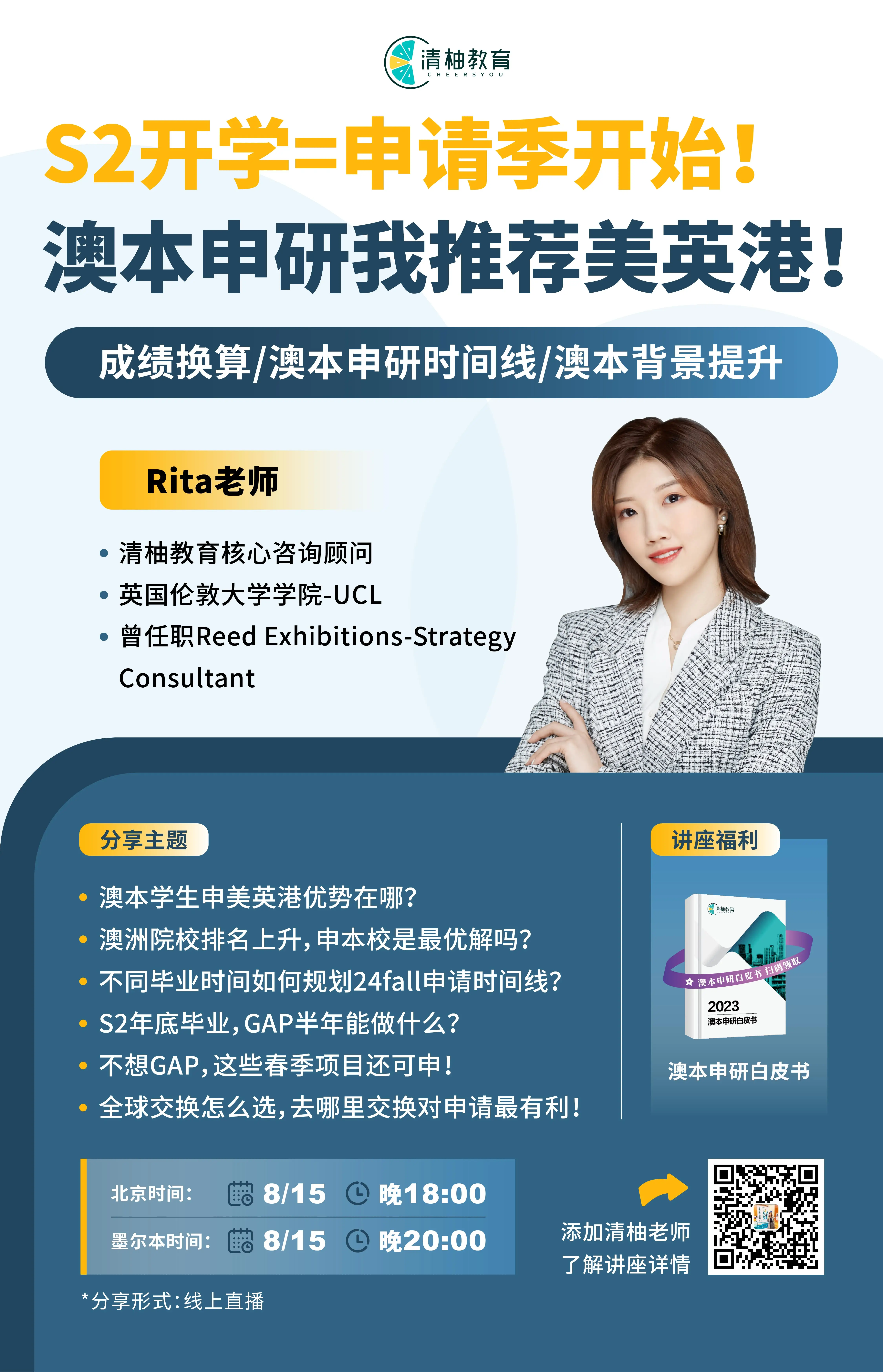 【澳本专场】QS排名发布后首讲澳本申研,美英港如何定位!