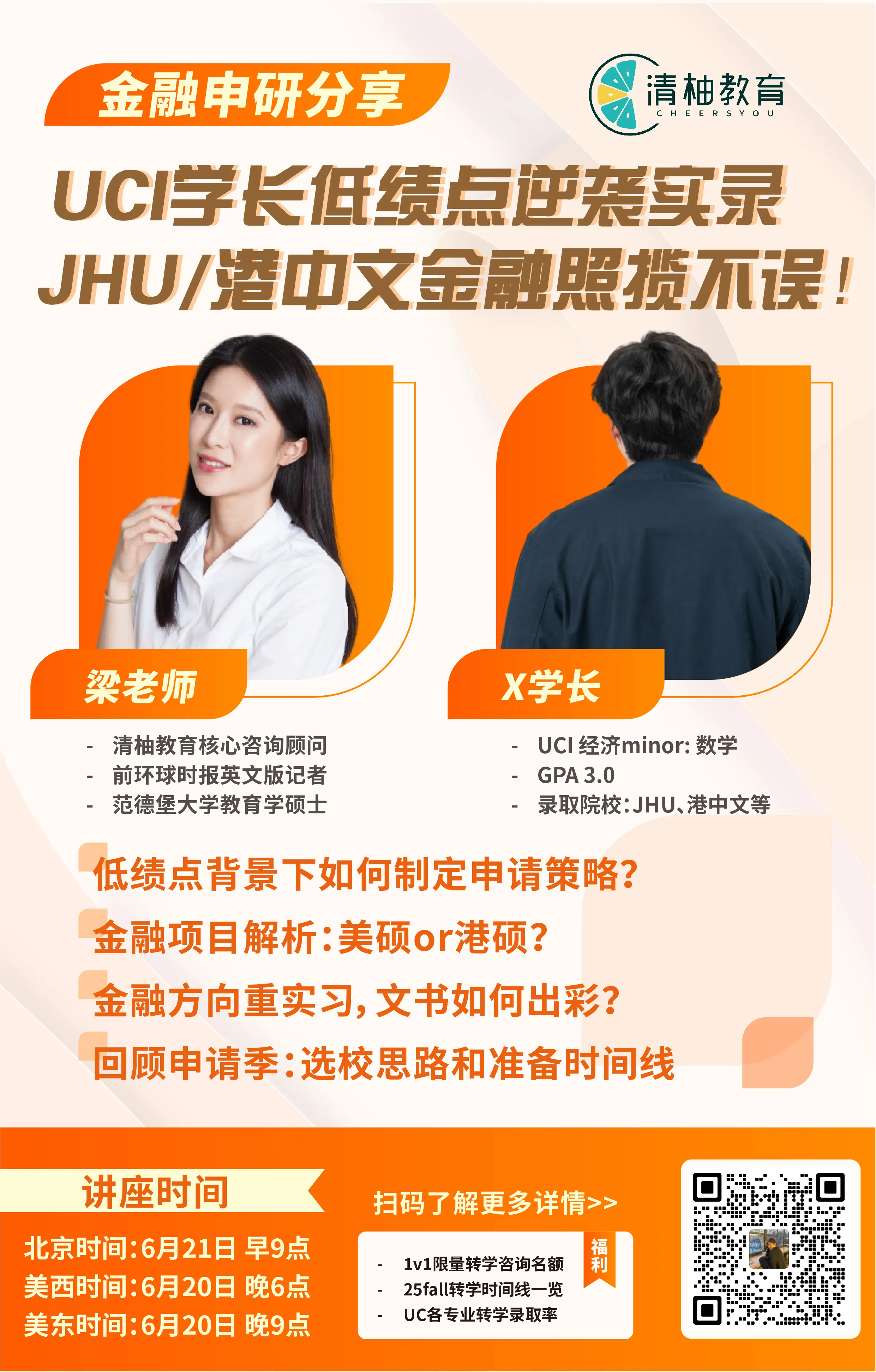 低绩点逆袭实录,UCI学长教你JHU/港中文金融照揽不误!