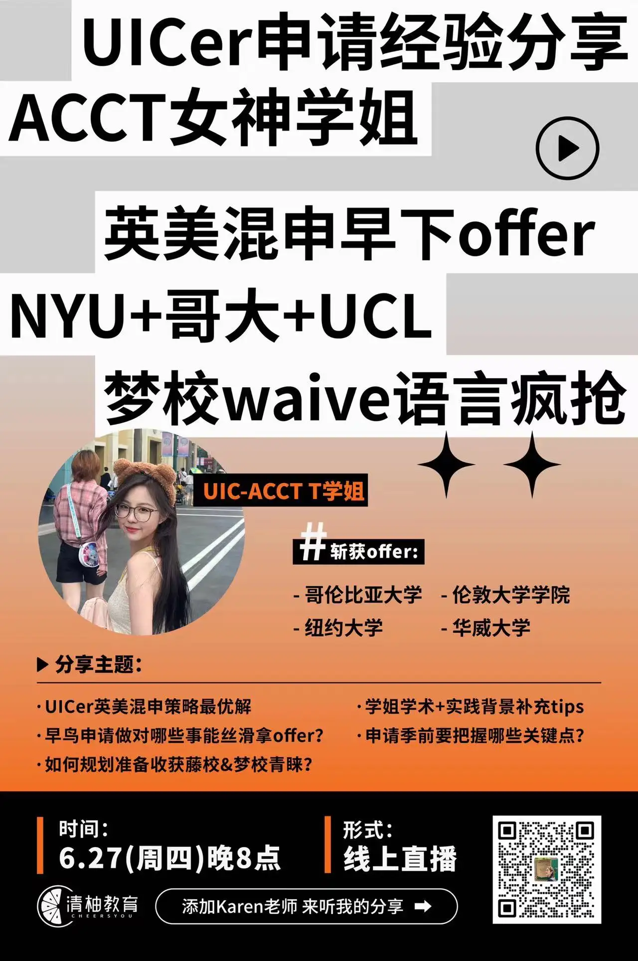 清柚教育申请团队、UIC学姐