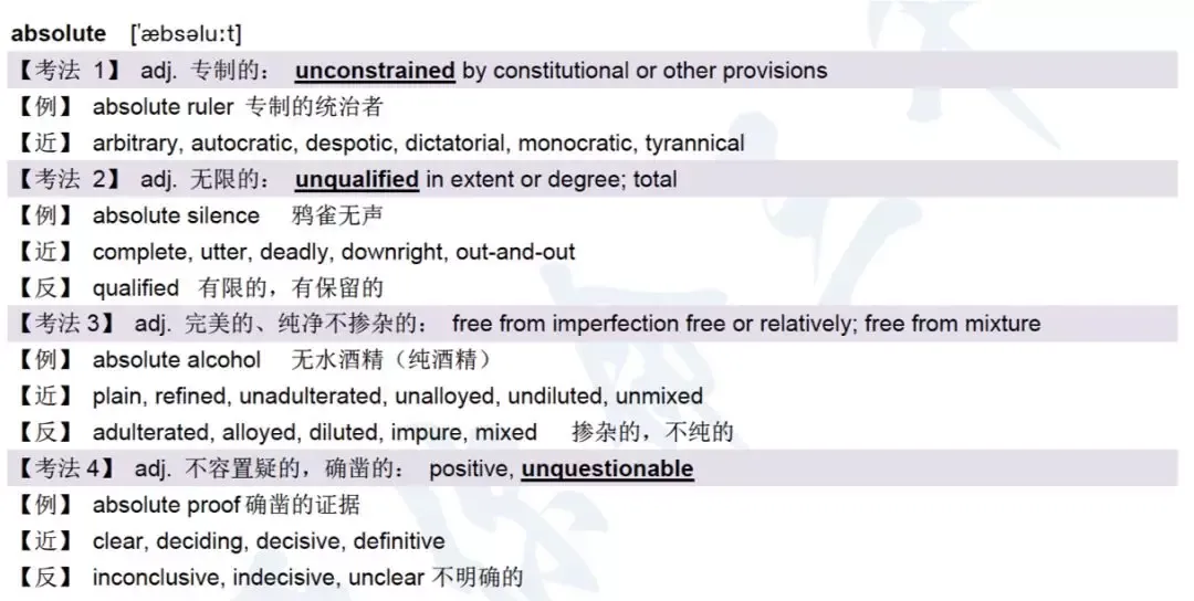 左边的蓝本包括很多的同义词和反义词,对于学生初期和中期的备考非常有用。
