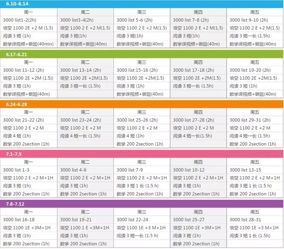以上是之前清柚老师给学员量身定制的GRE复习计划,供大家参考。总的来说,复习以单词为重,每天要保证足够的时间在背单词上。
