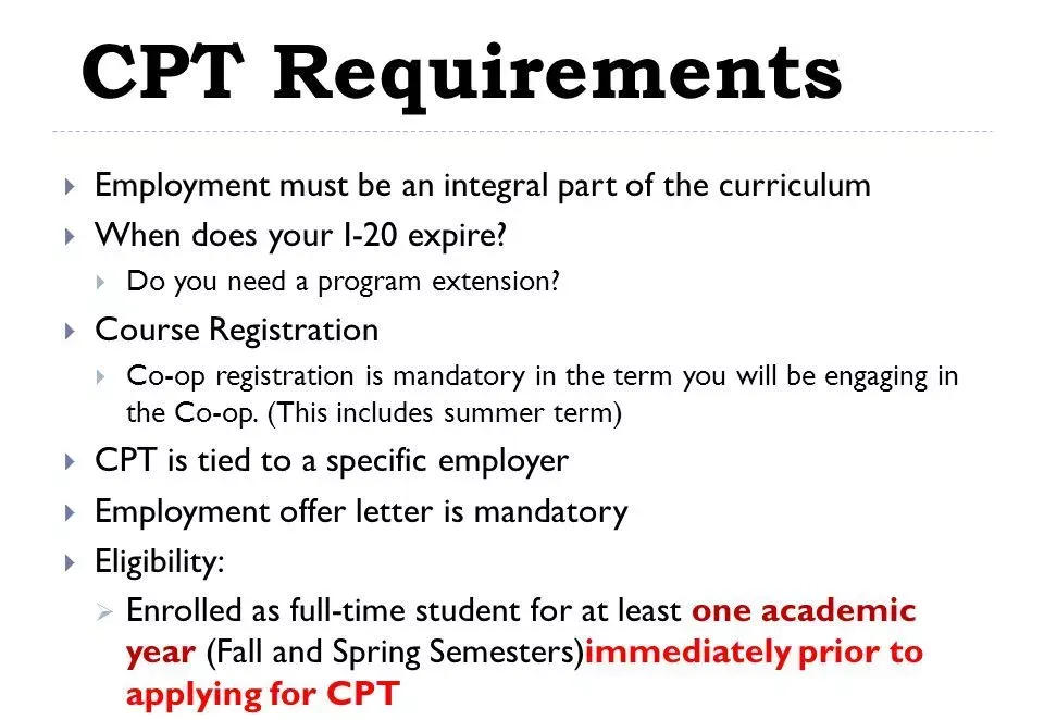 美国移民局规定国际学生必须在美国学习8个月以上才可以申请cpt,进行实习。