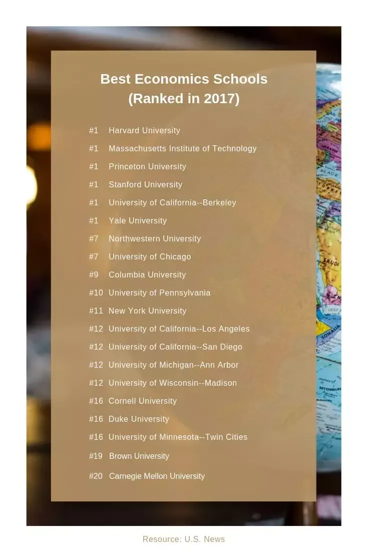最后附上U.S. News 2017年进行的Economics研究生院(硕士及以上学位)排名,供大家参考。
