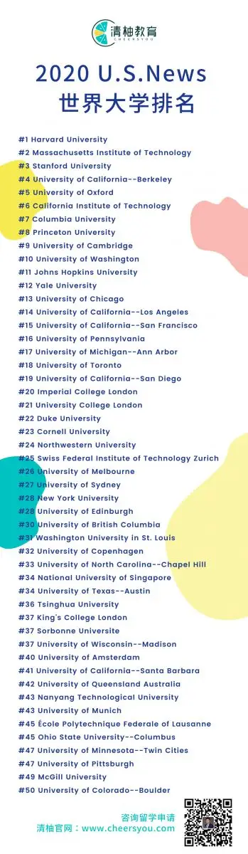 让我们看看2020 U.S.News 世界大学排名吧~