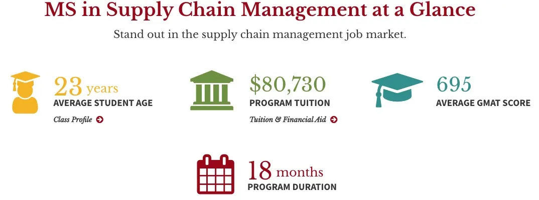 项目时长1-2年,共计36个学分。STEM项目。课程包括Data Science课程,战略质量管理、谈判与冲突管理、IT与供应链管理等。该项目对学生的本科背景没有硬性要求。