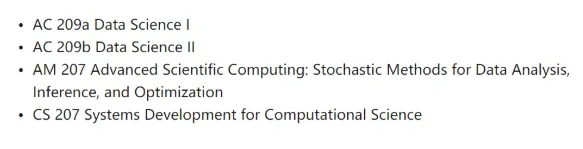 项目隶属于哈佛大学工程与应用科学学院,立志培养数据建模、机器学习,大数据分析管理及优化方面的顶尖人才。学员需要在至少三个学期内修完12门课程,其中四门核心课程如下: