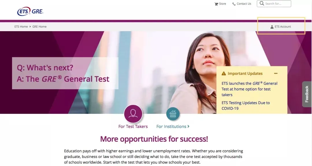 Step2:使用ETS账户、密码登录GRE官网https://www.ets.org/gre