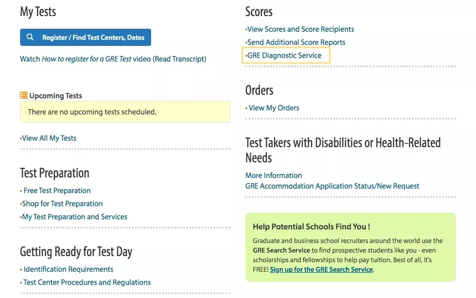 在查询分数下方,还有一项GRE Diagnostic Service。在这里,考生可以在考后15天看到自己每个Verbal/ Quantitative Section的具体答题情况,有效期为半年。