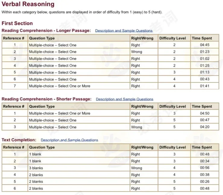 答题情况来看,阅读错2道,填空错2道,共答对16道题,是非常不错的成绩了,下一个Verbal Section将进入hard模式。
