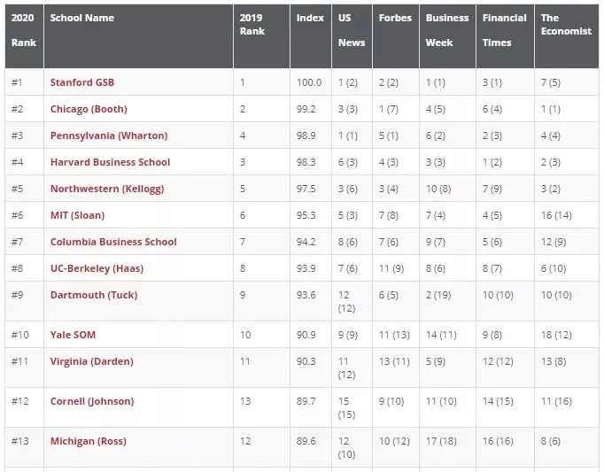 2021全美商学院MBA排名公布!斯坦福蝉联榜首,布斯/沃顿力压哈佛!