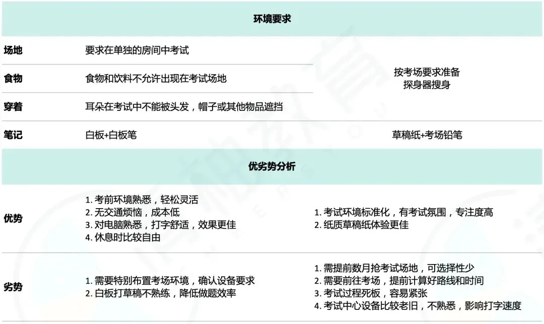 清柚今天也为大家准备了一份详细的GRE在家考vs考试中心对比,希望可以帮助到还在犹豫应该采取哪种考试方式的同学。