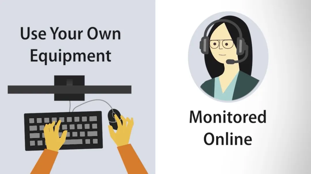 使用自己的电脑在家考试,使用ProctorU监考。
