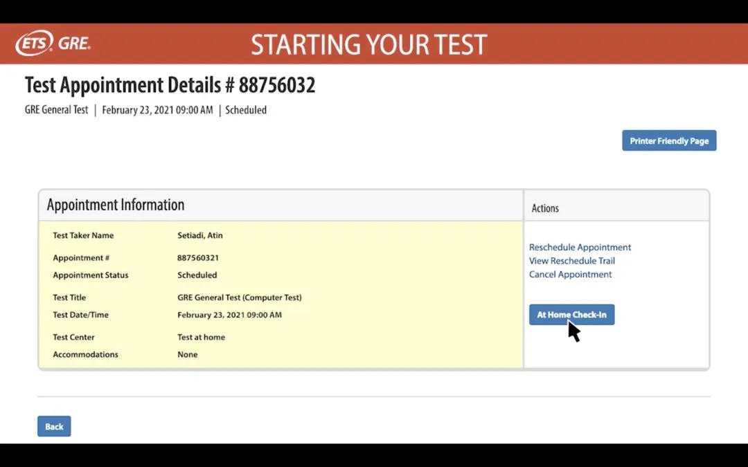5. 你会收到ETS的确认邮件,邮件中会包含check-in的链接和考试当天入场链接。