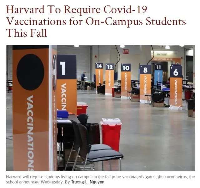 哈佛大学校长劳伦斯·S·巴科夫(Lawrence S. Bacow)此前在给哈佛大学所有附属机构的电子邮件中写道:学生应计划在返回校园之前至少两周接种美国食品药品监督管理局(FDA)或世界卫生组织(World Health Organization)批准的疫苗。