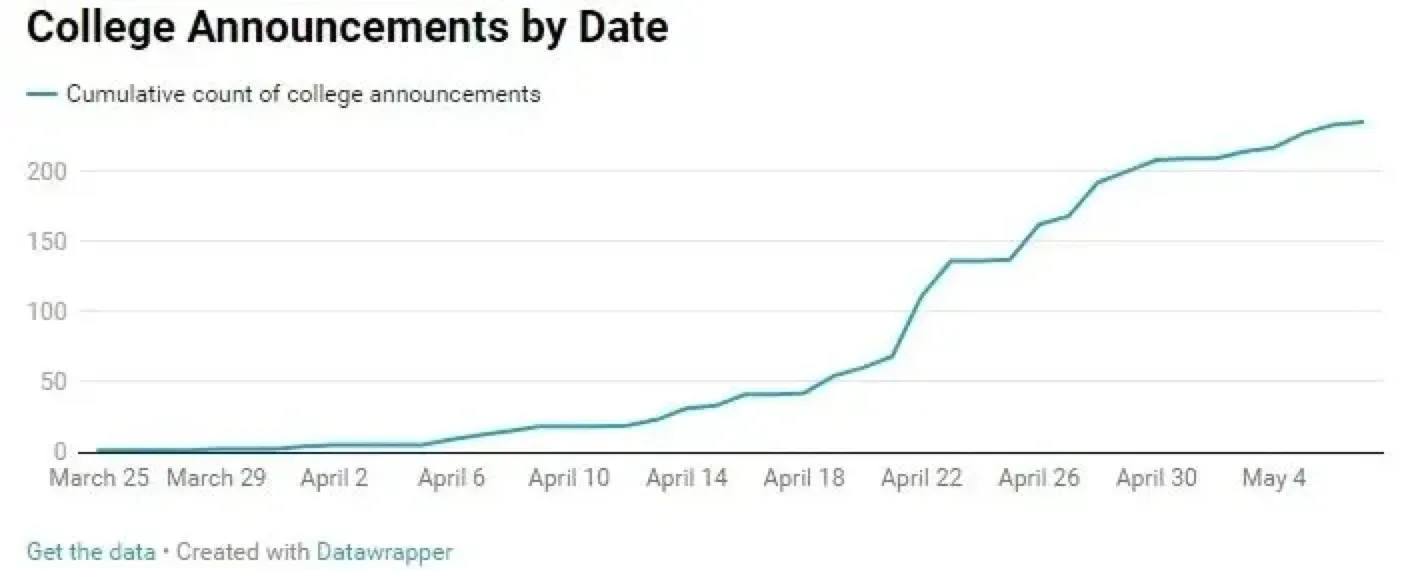 截至5月7日,据《高等教育纪事报》统计,为了秋季安全重启校园,已经近240所高校对秋季学期做出【强制接种疫苗】的规定,甚至有的学校将教职工也纳入强制要求。