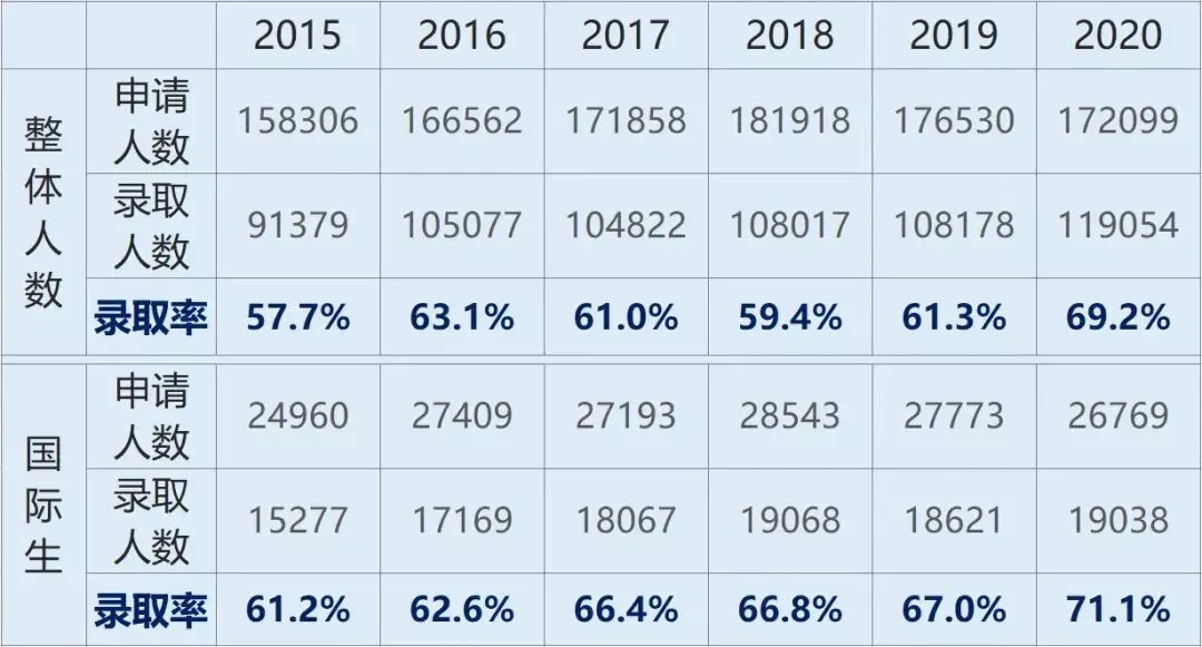 以UCLA 2020申请季数据为例,国际生录取率为9.3%,州外居民录取率是20.7%,加州居民录取率为13.6%;
