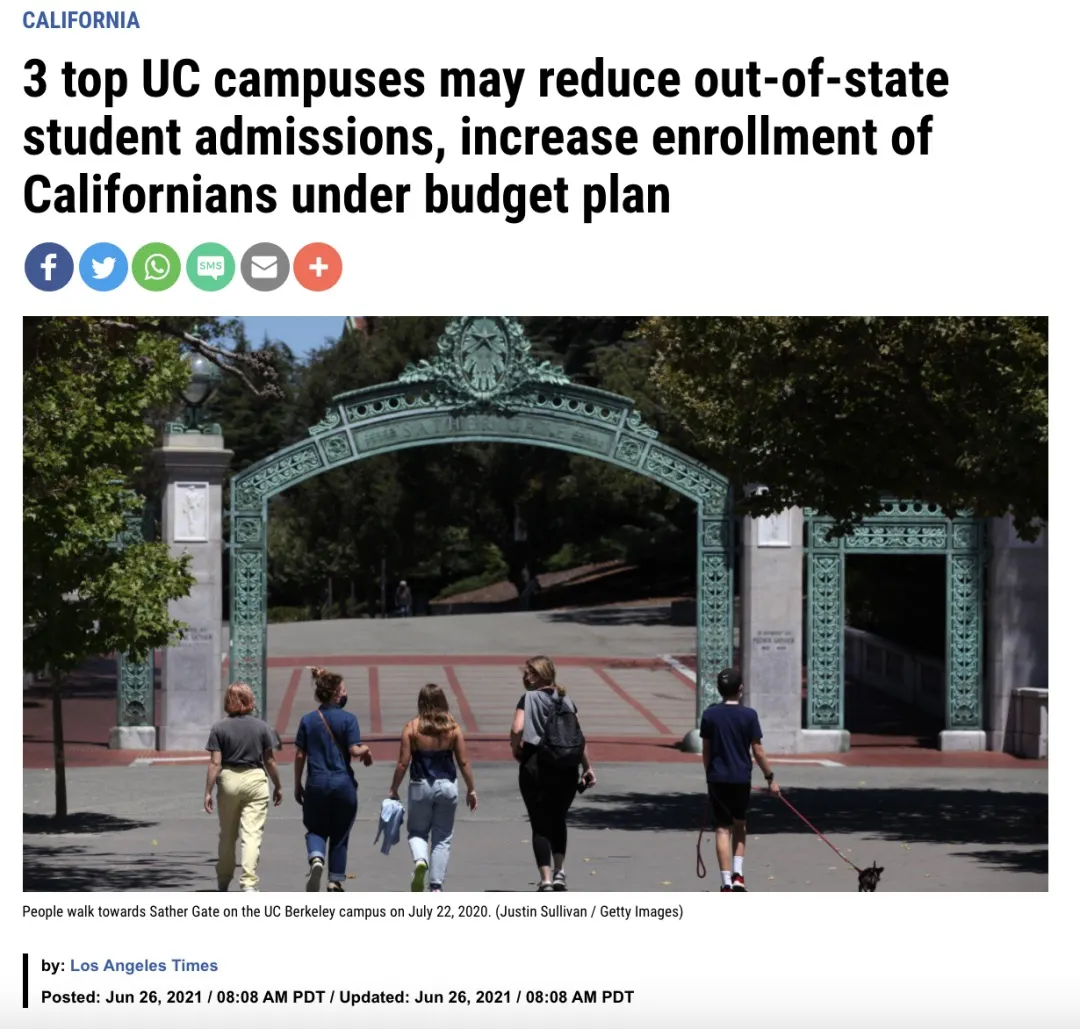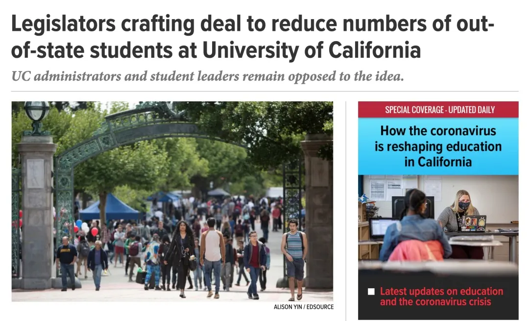 事实上,很多同学对UC缩招计划略有耳闻,今年5月,加州参议院公布了一个提案:从2022年开始,在未来十年内,将州外新生入学比例从目前全UC系统平均的19%降低到10%,并补偿加州大学因州外高额学费而损失的收入。