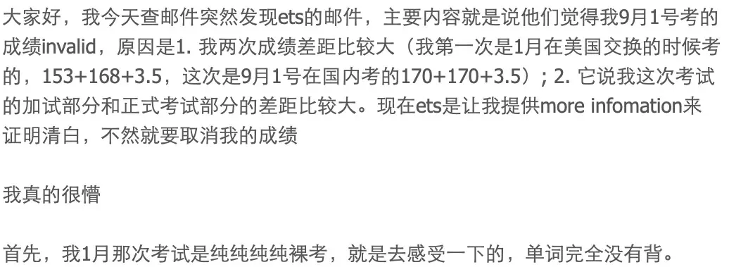 如果被ETS盯上,你的正式成绩报告就很有可能被review导致延期;一旦ETS发现了猫腻,则会被取消成绩。