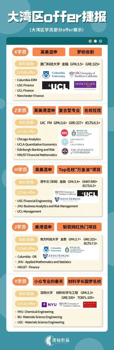 过去的一年里,清柚与同学们合作无间,创造了无数申请神话:藤校、最火专业、大跨度转专业、转学申请、低GPA逆袭、申请大满贯……应有尽有!