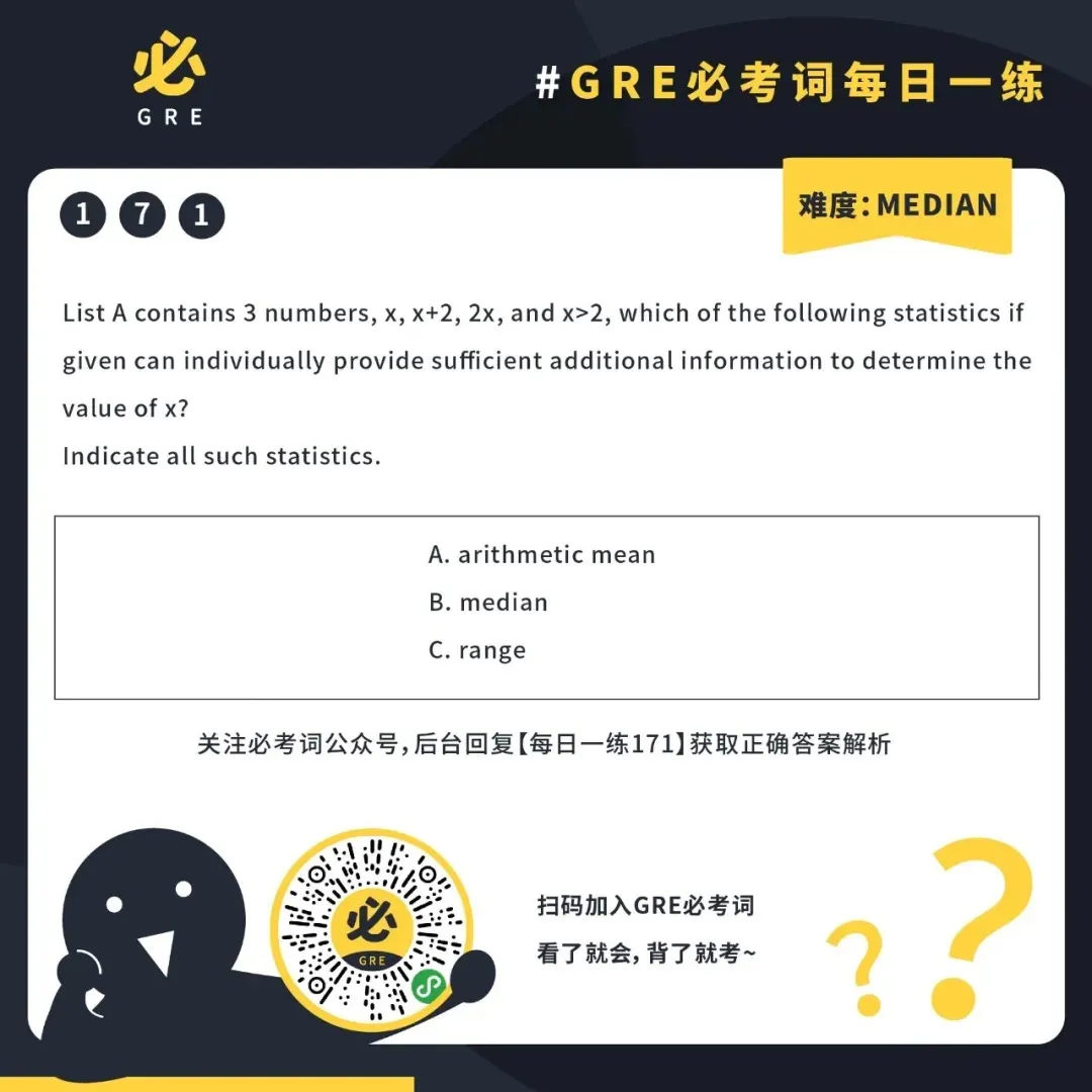 每日一练171 | 每天一道GRE题,想不提分都难!