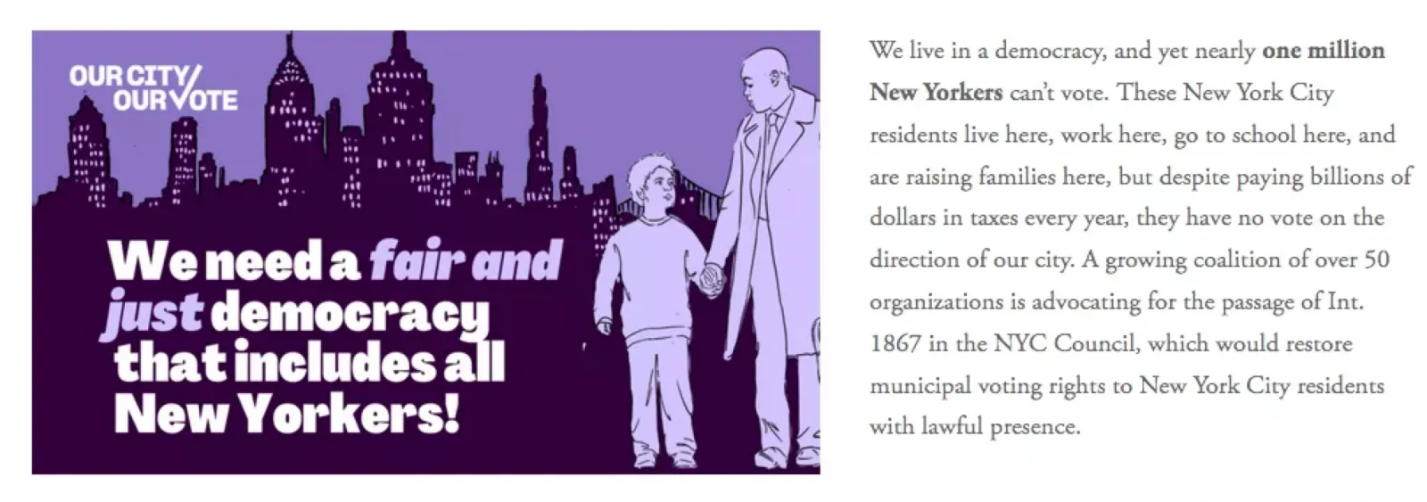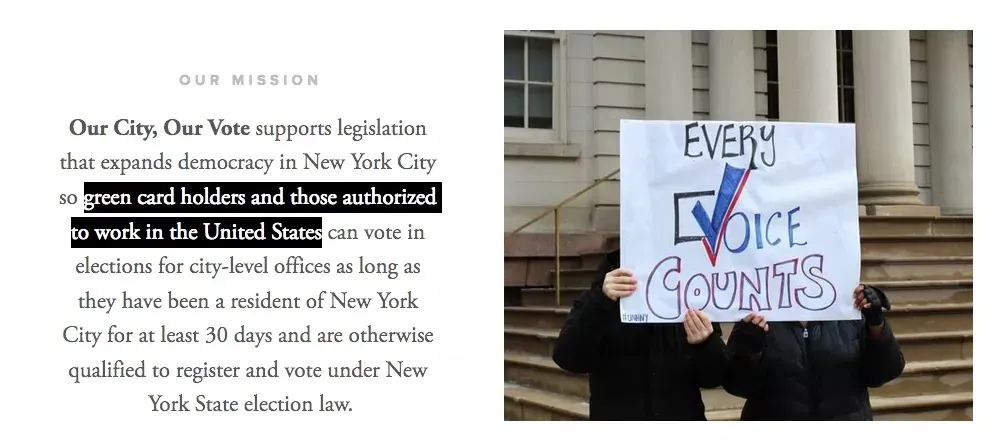 这项名为Our City,Our Vote(我们的城市,我们投票)的法案,由纽约市议员Ydanis Rodriguez发起。
