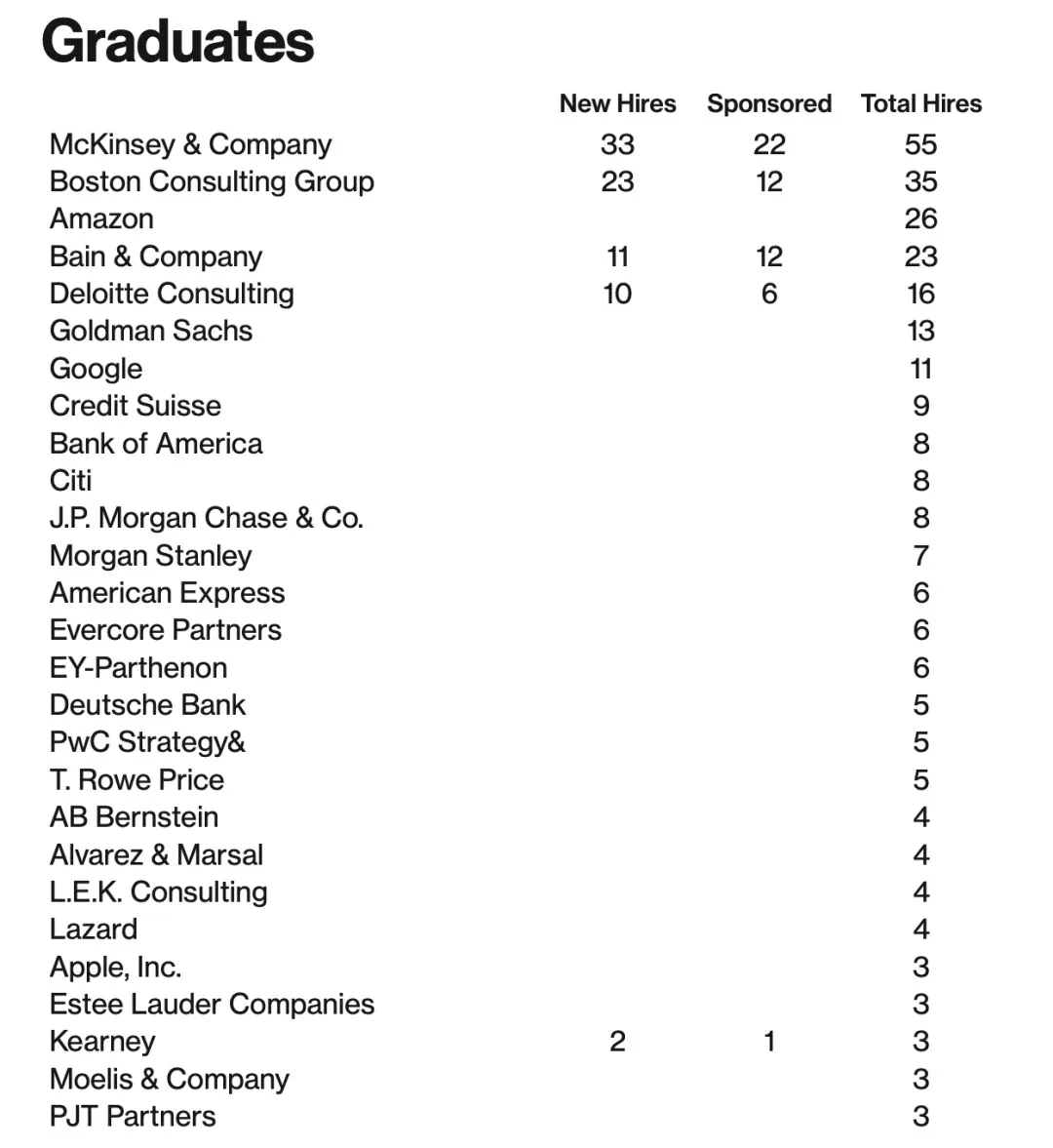 哥大校友的足迹也遍及华尔街、世界500强精英企业。给大家看一下2021届哥大商学院毕业生去的部分公司感受一下: