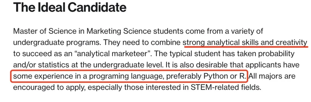 哥大的MSM为一年制的研究生项目,偏向于市场分析方向。培养学生拥有夯实的数据分析能力,并利用此能力进入传媒、消费品、零售商、和金融服务行业。