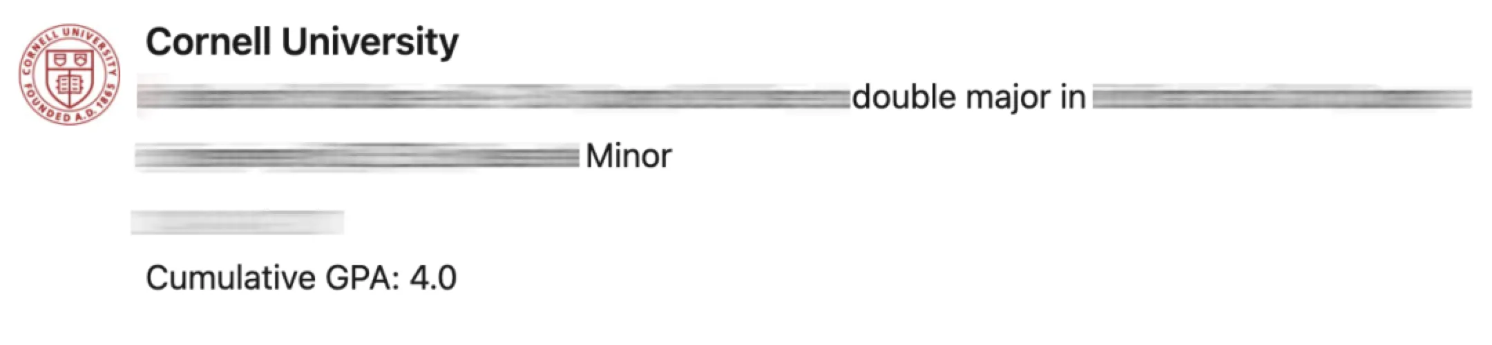 这部分需要填写个人履历,重点描述1-2个高光经历,包含的Bullet Points不要超过五个。注意呈现实习经历里自己的工作成就和可量化的结果导向。