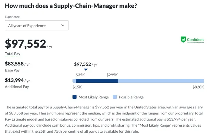 毕竟目前不管是国内还是国外物流/供应链管理相关专业都有着丰厚的待遇。根据Glassdoor网站数据统计,供应链管理相关职位在美国平均的年薪就有10w美元。