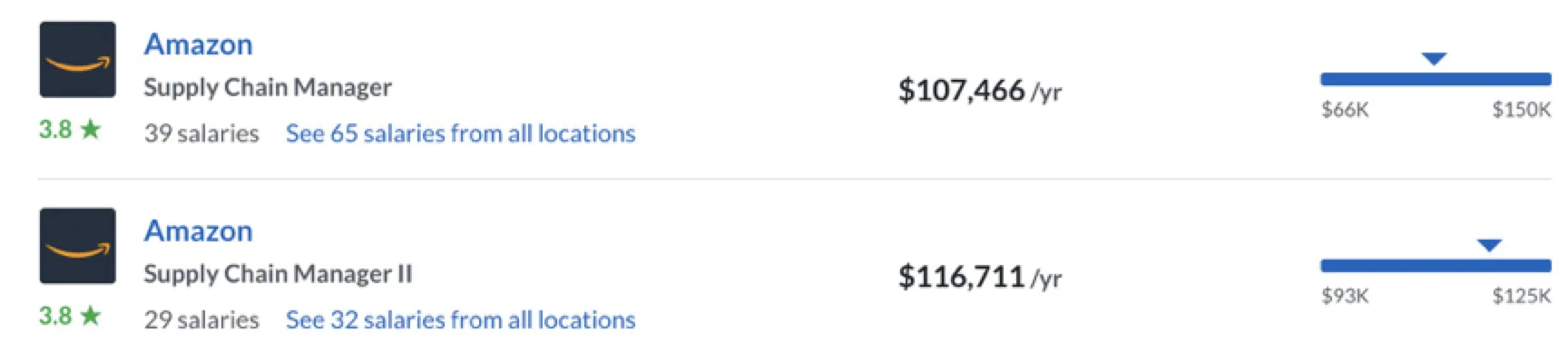 像是亚马逊供应链管理相关职位招聘薪资都是10w起。