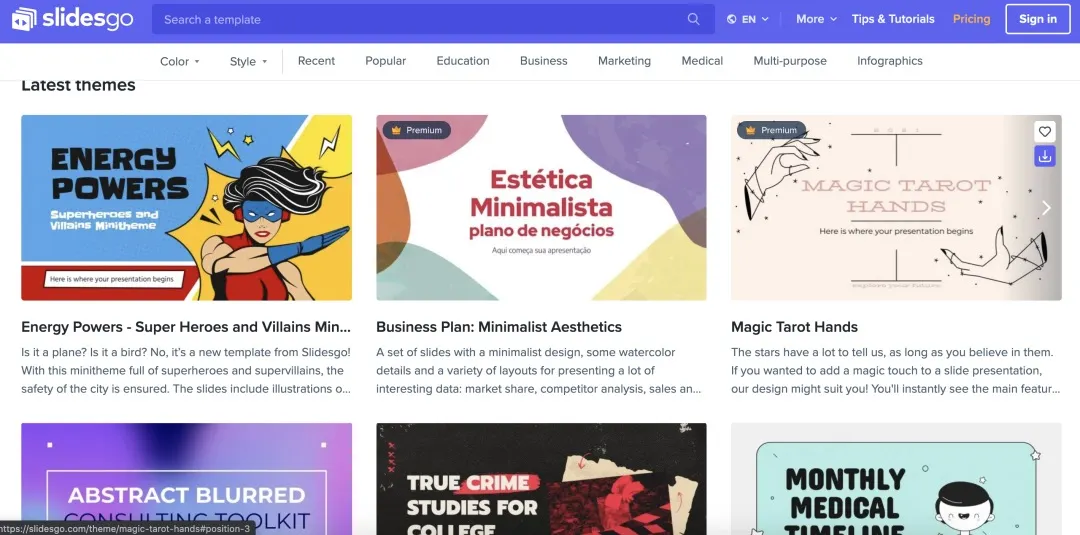 这网站肯定很多同学都用过,用来设计海报特别方便。这里的PPT模板其实也非常精致,各种各样的都有,而且绝大部分是免费的。