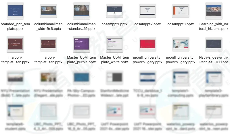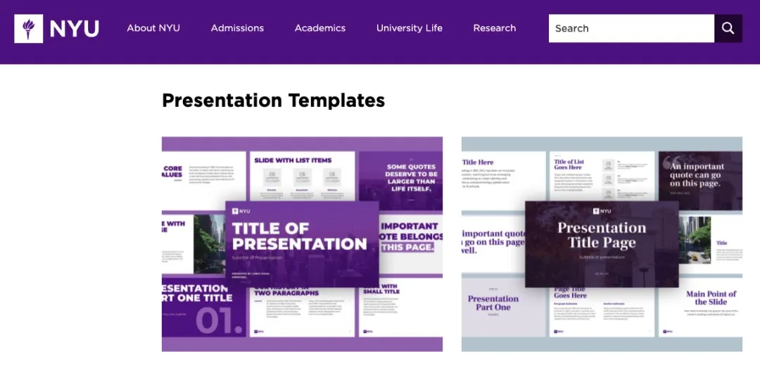 不同大学官网,一般都会提供官方配色和设置的PPT模板。使用自家的PPT模板,准没错,保险又亲切!参考其他大学的PPT,相信也能提供不少灵感。