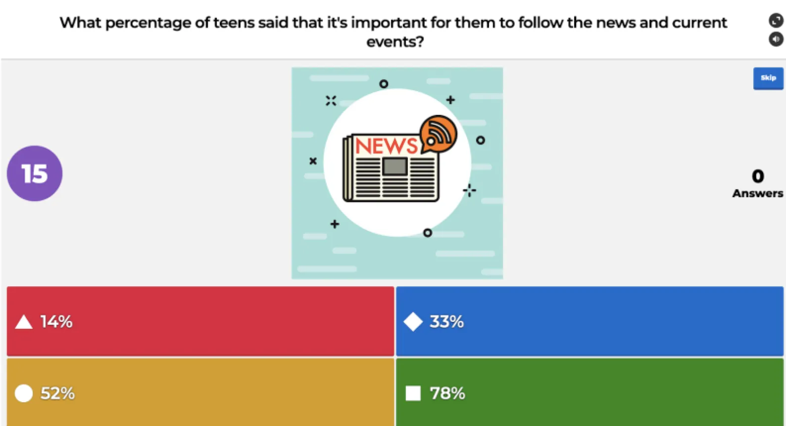 Kahoot是现在国外课堂用的非常频繁的互动类演示工具。演示者可以创立自己的kahoot项目,以选择题的形式设置问题和选项。每个kahoot项目会有自己的密码,观众输入正确密码即可参与问答。系统会实时显示每道题参与的人数和积分榜前五名玩家。